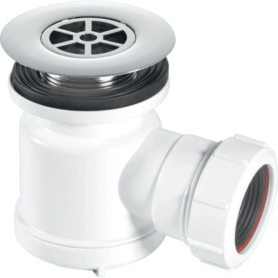 General description The McAlpine STW7-R is a 19mm water seal shower trap designed for low-level shower trays. It features a universal outlet, making it compatible with a wide range of waste pipes and fittings. This trap effectively prevents foul odours from escaping into the bathroom, ensuring a fresh and hygienic environment. Its compact design is ideal for installations where space is limited. Technical specifications Water Seal: 19mm Universal Outlet: 1.5" BSP Thread Flanges available in White or Chrome Plated Plastic, or Chrome Plated Brass Suitable for shower trays with a 50mm waste hole Universal Outlet: 1.5" Installation The McAlpine STW7-R is designed for easy installation in low-level shower setups. Its universal outlet allows for compatibility with both plastic and copper waste pipes. Usage This shower trap is designed to provide reliable performance and prevent foul odours from escaping. It features a removable filter for easy cleaning and maintenance, ensuring that the