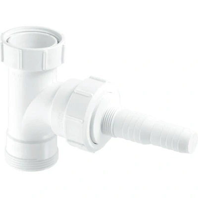 General description The McAlpine V33L is a Swept Tee plumbing component designed for use with the discharge hose of domestic appliances, such as washing machines or dishwashers. Its innovative design features a gentle curve that helps prevent blockages and maintain a smooth flow of water through the plumbing system, ensuring reliable and long-lasting performance. Technical specifications Configuration: BSP Nut x BSP Thread x Nozzle Available sizes: 1¼" x ¾" and 1½" x ¾" Material: Polypropylene Compatibility and accessories Compatible with discharge hoses of washing machines and dishwashers Installation Easy installation in a variety of plumbing systems Nozzle connects to the discharge hose, while the BSP nut and thread connect to the plumbing system