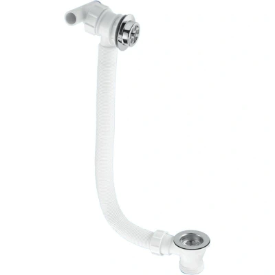 General description The McAlpine WF21 Wasteflow with 1½" Waste Outlet Fitting, Plug, Chain and 2 Way Connector is a plumbing fitting designed for use with kitchen sinks. It provides a comprehensive solution for a clean and efficient kitchen waste system, featuring an easy-to-use plug and chain assembly along with a convenient 2-way connector for connecting appliances such as dishwashers or washing machines. Technical specifications 1½" BSP threaded waste outlet Designed to fit into a 90mm diameter hole in the sink Supplied with a rubber sealing washer for a watertight seal 1½" Multfit Outlet 1½" BSP male thread on inlet Compatibility and accessories Available without trap, or with FJ10 or FSK10 trap Supplied with flexible overflow tube and CP overflow grating Installation Connects to standard pipework using a compression fitting or similar Designed to be inserted into the side of the waste outlet Usage The plug and chain assembly prevents water from flowing out of the sink when