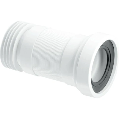 General description The McAlpine WC-F23R is a flexible WC (water closet) connector designed for a secure connection between the toilet pan and the waste pipe. This connector is particularly useful in plumbing installations where the toilet pan is not directly aligned with the waste pipe, allowing for movement and adjustment to ensure a tight fit. Technical specifications Inlet size: 97-107mm Outlet size: 4"/110mm Length: Extends to 310mm Other information Available in 2 lengths Plain End outlet fits ring seal socket of 110mm soil or underground fittings Independent tests show no build-up of sediment in the flex Recommended to have plumbing work carried out by a qualified professional