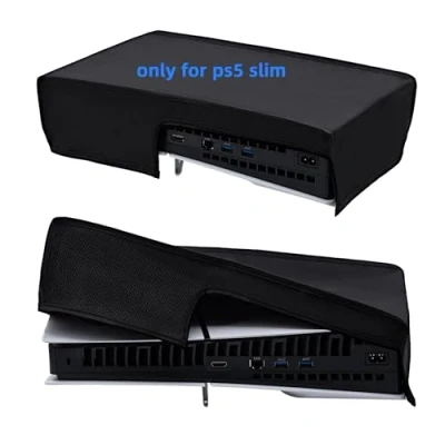 Dust Cover for Horizontal PS5 Slim. Dust cover specially designed for PS5 Digital Edition and Ultra HD consoles in horizontal mode only. Premium Material. Made of 1680D Oxford cloth to protects your console from scratching and dust. Cutting Precision. Backend cutaway design allows you to access cable port easily. No need to unplug the cables. Velcro strap at the bottom can keep it snug. Protective Guard for Horizontal PS5 Slim. Easy to use and clean. Prevent your console from dust, minor scratches, UV and pet hairs. NOTE: Only Compatible with PS5 Slim, Not for PS5/PS5 Pro., Manufacturer: Mcbazel