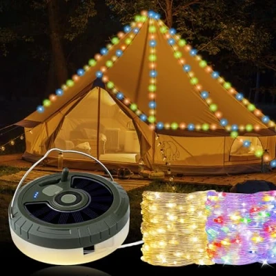 Multifunctional Outdoor Indoor Lighting: Features 5 versatile modes including low candlelight, battery reminder, coloured breathing light, and dual warm light. Perfect as Camping Accessories Solar Lights for creating cosy atmospheres in tents, gardens or Festival Camping Lighting. The integrated hook, magnet and IP44 Waterproof Fairy Lights Solar design ensure adaptability to any adventure. Effortless Storage & Setup: Innovative rotating handle allows quick retraction into the compact body – no tangled wires! Retractable Solar String Lights 10m instantly deploy for use. Magnetic base and reinforced hooks securely attach to tents, metal surfaces or trees, making these Portable Camping Lantern with Hooks ideal for spontaneous outings. Dual Charging Reliability: Power via included USB-C cable or solar panel (emergency backup). Solar Powered String Lights provide up 5 to 12 hours runtime . Place the panel outdoors for a sunny morning or an afternoon to charge up to 30% of the light's powersupports 2-hour emergency lighting even with partial solar charge. Essential Rechargeable Camping Lights for hiking, Outdoor Camping trips and power outages. Remote-Controlled Convenience: Adjust modes from 8 metres away – no ladder needed! Ideal for decorating Patio Hanging Lights Solar or setting mood lighting in RVs. A game-changer among Solar Lights for Tent Outdoor Camping. All-Season Versatility: From summer Garden Decor Solar String Lights to Christmas Outdoor Solar Lights and Solar Party Lights Outdoor Waterproof celebrations. Water-resistant construction withstands drizzles while remote operation adds magic to festivities.