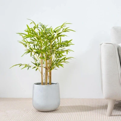 General description This decorative artificial bamboo tree stands at 80cm tall and looks incredibly realistic, requiring no upkeep. You can easily adjust the branches and leaves to achieve your desired look. It features an abundance of lifelike leaves and realistic-looking soil in the pot, making it difficult to tell that it is artificial. This plant effortlessly brings a fresh feel to any room without the hassle of caring for a real plant. Technical specifications Height: 80 cm Materials: Bamboo poles and plastic leaves Available in 5 different heights Usage Ideal for decorating living rooms, bedrooms, reading rooms, dining rooms, and offices Perfect for entryways, patios, and commercial locations such as bookstores and coffee shops Other information Easy to clean: wipe with a clean cloth to remove dust No assembly required: simply take the artificial tree out of the package Leaf color and quantity may vary for a more realistic appearance