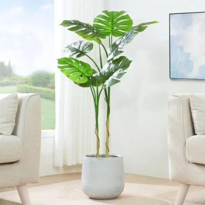General description This decorative artificial monstera tree stands at 120cm tall and looks incredibly realistic, requiring no upkeep. You can easily adjust the branches and leaves to achieve your desired look. It features an abundance of lifelike leaves and realistic-looking soil in the pot, making it difficult to tell that it's artificial. This plant effortlessly brings a fresh feel to any room without the hassle of caring for a real plant. Technical specifications Height: 120 cm Materials: Plastic leaves Usage Ideal for decorating living rooms, bedrooms, reading rooms, dining rooms, and offices. Perfect for entryways, patios, and commercial locations such as bookstores and coffee shops. Other information Easy to clean: Simply wipe with a clean cloth to remove dust. No assembly required: Just take the artificial tree out of the package upon receipt. Please note that leaf color and quantity may vary to enhance the realistic appearance.