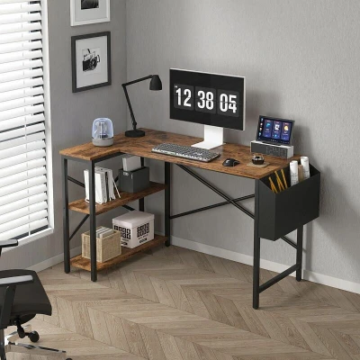 mcc direct L Shaped Corner Desk, Computer Desk Study Office Gaming Writing Table with Bookshelf Reversible For Home Studio Workstation(Brown, 100cm)