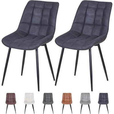 ManoManoGeneral description Introducing our luxurious set of 2 Faux Matte Suede Leather Dining Chairs, designed to enhance your dining experience. These chairs feature a stylish curved bucket seat that is not only visually stunning but also ergonomically designed for maximum comfort and support. The combination of elegance and practicality makes them perfect for any dining occasion, whether it's a dinner party or a quiet meal at home. Technical specifications Material: Technological fabric with padded seat and metal legs Chair Size: 44cm x 43cm x 85cm (L x W x H) Height from floor to seat: 47cm Installation Simple assembly required Instructions included in the package Usage Suitable for dining rooms, kitchens, living rooms, bedrooms, and lounges Perfect for hosting dinner parties or enjoying meals at home