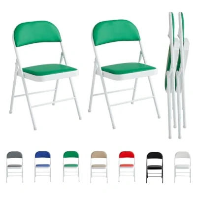 mcc direct Set of 2 Folding Chairs, Faux Leather Foldable Chairs with Metal Frame and Padded Seat, Easy to Fold Store for Home, Office, Dining Reception (Green)