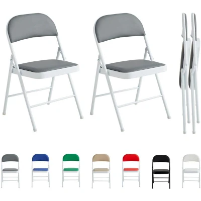 mcc direct Set of 2 Folding Chairs, Faux Leather Foldable Chairs with Metal Frame and Padded Seat, Easy to Fold Store for Home, Office, Dining Reception (Grey)