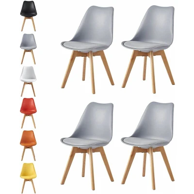 mcc direct Set of 4 Dining Chairs Wooden Legs Soft Cushion Pad Stylish DELUXE Retro Lounge Office EVA (Grey)