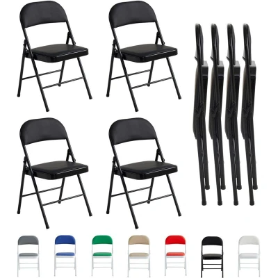mcc direct Set of 4 Folding Chairs, Faux Leather Foldable Chairs with Metal Frame and Padded Seat, Easy to Fold Store for Home, Office, Dining Reception (Black)