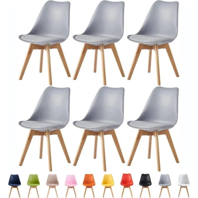 mcc direct Set of 6 Dining Chairs Wooden Legs Soft Cushion Pad Stylish DELUXE Retro Lounge Office EVA (Grey)