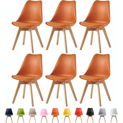 mcc direct Set of 6 Dining Chairs Wooden Legs Soft Cushion Pad Stylish DELUXE Retro Lounge Office EVA (Orange)