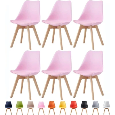 mcc direct Set of 6 Dining Chairs Wooden Legs Soft Cushion Pad Stylish DELUXE Retro Lounge Office EVA (Pink)
