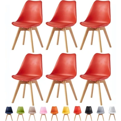 mcc direct Set of 6 Dining Chairs Wooden Legs Soft Cushion Pad Stylish DELUXE Retro Lounge Office EVA (Red)