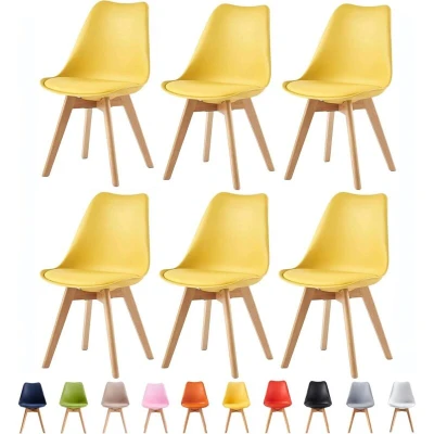 mcc direct Set of 6 Dining Chairs Wooden Legs Soft Cushion Pad Stylish DELUXE Retro Lounge Office EVA (Yellow)