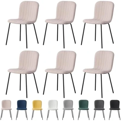 mcc direct Set of 6 Soft Fabric Dining Chairs with Upholstered Seat and Metal Legs for Room, Living Room Kitchen New Bella (Pink)
