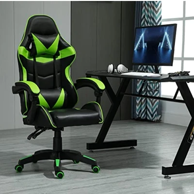 mcc direct Swivel Faux Leather Office Chair Racing Sports Gaming Tilt Computer Desk with Headrest & Lumbar Cushion A (Green)