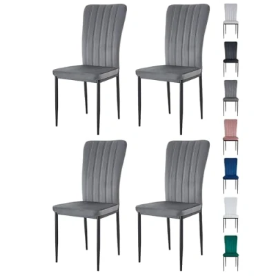 Descriptions: Brand: mcc direct Color: Dark Grey, Light Grey, Black, Green, Light Blue, Beige, Pink Pieces: Set of 2,4, 6 Elevate your dining experience with our stylish high back soft velvet fabric dining chairs, designed for both comfort and elegance. Each chair features a handcrafted stitched seatback that adds a touch of sophistication, while the striking black metal frame ensures durability and stability. With protective rubber feet, you can enjoy peace of mind knowing your floors are safe from scratches. Ergonomically designed for maximum comfort, these chairs are available in seven stunning colors, allowing you to effortlessly match your decor and create a cohesive look in your dining space. Key Features: Material: The dining chair is made of velvet and with a Padded Seat, curved back and Metal Legs. Durable: High quality sturdy metal frame for added durability. Dimensions: Chair Size: 42cm x 40cm x 95cm (L X W X H); Height from floor to seat: 47cm. Multiple Usage: The chair is