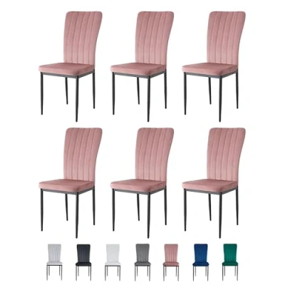 Descriptions: Brand: mcc direct Color: Dark Grey, Light Grey, Black, Green, Light Blue, Beige, Pink Pieces: Set of 2,4, 6 Elevate your dining experience with our stylish high back soft velvet fabric dining chairs, designed for both comfort and elegance. Each chair features a handcrafted stitched seatback that adds a touch of sophistication, while the striking black metal frame ensures durability and stability. With protective rubber feet, you can enjoy peace of mind knowing your floors are safe from scratches. Ergonomically designed for maximum comfort, these chairs are available in seven stunning colors, allowing you to effortlessly match your decor and create a cohesive look in your dining space. Key Features: Material: The dining chair is made of velvet and with a Padded Seat, curved back and Metal Legs. Durable: High quality sturdy metal frame for added durability. Dimensions: Chair Size: 42cm x 40cm x 95cm (L X W X H); Height from floor to seat: 47cm. Multiple Usage: The chair is