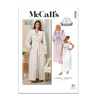 MCCALLS M8381A Misses' Robe, Tie Belt and Nightgown by Laura Ashley A (XS S M L)