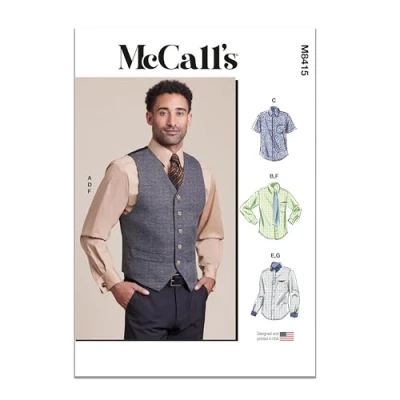 MCCALLS M8415BB Men's Lined Vest, Shirts, Tie and Bow BB (XL XXL XXXL)