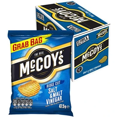 McCoy's Ridge Cut Crisps, Multipack Box of Flavoured Potato Crisp Snacks, 36 x 47.5g Salt & Malt Vinegar