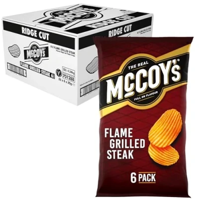McCoys Flame Grilled Steak Multipack Crisps 6 Pack (Pack of 20) Fully loaded with flavour, iconic ridged crisp, unmistakable crunch