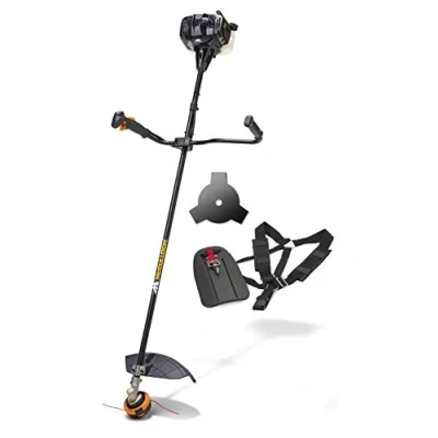 Variable working width: When using the thread, the appliance has a working width of 52 cm; when using the grass blade, the working width is 25.5 cm Powerful engine performance: With a power output of 0.9 kW and a displacement of 33 cm³, the petrol brushcutter easily cuts through densely overgrown grass Simple maintenance: The air filter cap can be removed without the need for tools, significantly simplifying the maintenance process Keep working for longer: The padded carry strap provides relief for the arms and shoulders. The height-adjustable handle is highly ergonomic Scope of delivery includes: 1x McCulloch B33 B brushcutter, 1x trimmer head, 1x grass blade, 1x double strap (Article Number: 00096-70.574.01), Weight: 15.43235834 pounds, Manufacturer: Husqvarna