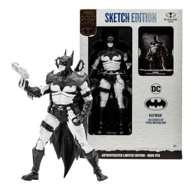 A COMIC LEGEND'S TRIBUTE: Explore the legacy of Todd McFarlane, renowned for his work on Batman in the 1980s. This 7" scale figure pays homage to his iconic Batman #423 cover and his legendary involvement in the comic book industry. UNPARALLELED DETAIL: Batman is exquisitely detailed with up to 22 points of articulation, providing a full range of poses for collectors and fans of all ages. EXCLUSIVE DESIGNER PRESENTATION: Batman is presented in a sketch artist edition look and packaged in an exclusive designer box, making it a standout addition to any collection. COMPREHENSIVE ACCESSORIES SET: This figure includes 2 swords, 2 daggers, goggles, a batarang, and a grapnel launcher, ensuring you can create dynamic action scenes with your Batman collectible. CERTIFIED AUTHENTICITY: Each purchase comes with a collectible art card featuring character art on the front and a certificate of authenticity on the back. Join the McFarlane Toys DC Multiverse collection and experience the Batman legend in a whole new way. Don't forget to Collect all McFarlane Toys DC Multiverse Figures for the ultimate DC universe display!, Manufacturer: McFarlane Toys