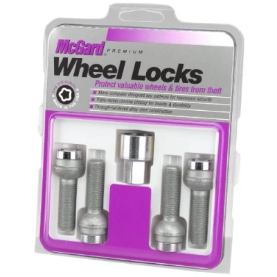 Seat Style Radius Seat Bolt; Thread Size M14 x 1.5; Overall Length 48.9mm; Hex Size 17mm; Includes 4 Locks & 1 Key.Fit Type: Vehicle Specific Radius wheel Bolt set for use with steel or aluminum wheels with a radius seat, The Floating 2-piece design provides optimum safety and performance, This protects against galling, helps prevent seized or difficult to remove lug bolts and provides precise torque tensions. Kit includes Wheel lock bolts, unique key tool and ID card McGard’s plating process includes several layers of nickel and one layer of microporous chrome producing a superior finish while protecting against rust. Every lock is through-hardened and tempered. Manufactured in the USA to meet or exceed OEM standards. Please note that wheel lock bolts and Lug bolts are application-specific products. You must confirm proper fitment for your vehicle by using the Amazon part finder or consulting our website. Please review important fitment notes provided. Also note the type of seating your lug bolts require they can be either radius, flat or cone seat this has to be done visually by the customer to insure a proper fit before purchase and install along with correct shank length and thread size that matches your current lug bolts Due to the unique key patterns, the pattern shown in images will differ from the pattern on the locks you receive. If ordering multiple lock sets, the keys will not match. McGard keys will not match OEM locks installed by the factory or dealership.