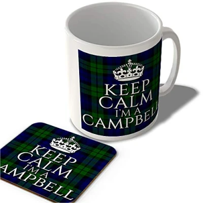 Is your Surname Campbell? Perfect Scottish Clan Tartan mug to show to friends & family. Great for kilt fans and Scotland lovers. Birthday and Christmas gift. MADE IN SCOTLAND! - Everyone is at least 5% Scottish (or so we've heard). All of our mug and coaster sets are printed in Scotland so if you're looking for an authentic Scottish gift you've come to the right place! AN EXCELLENT PICK! - Our mugs are the perfect vessel for coffee, tea, or hot chocolate enthusiasts, and our coasters with help keep your coffee tables mark-free! TOP NOTCH BANTER! - Our designers and printers have been putting top notch banter on mugs and coasters since 2014. Our mugs can endure many times in the microwave or dishwasher, so they'll be giving you a laugh for many years to come! BACK SMALL BUSINESSES! - When you buy from us, you're directly backing a UK-based small business!