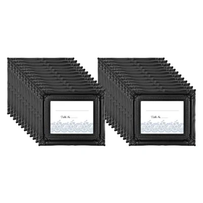 Frames come in a 24 Count (Pack of 1)- Perfect for place cards, table numbers, and favors. Frames include pre-attached easel for vertical or horizontal display Frames are made of durable plastic with glass front Each frame holds one 2"x2. 75" place card or photograph Frames come packed in a giftable box.Frames have a matte black finish