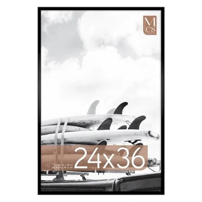 Modern Design: Our Gallery Foundation Poster Frame is a large photo frame that features a 0.75 inch wide by 0.8 inch deep profile in a sleek black finish designed to help you create a contemporary display for your poster frames or art prints Dimensions: This 24x36 poster frame measures 24.8 x 36.8 x 0.8 inches overall and holds a single 24x46 inch photograph, poster, or art print Quality Construction: Our wall frames are made of durable extruded plastic material and feature a clear plexi front that provides protection from dust and dirt Easy To Use: Our modern hanging picture frames have MDF wood backs that make adding your photo or art print a breeze; Frames include 2 pre-attached sawtooth hangers for easy vertical or horizontal hanging Wall Decor: With a passion for design, trend and functionality, MCS delivers best-in-class products that help make your house a home; With multiple sizes and finishes to choose from, you can create a beautiful display in any room