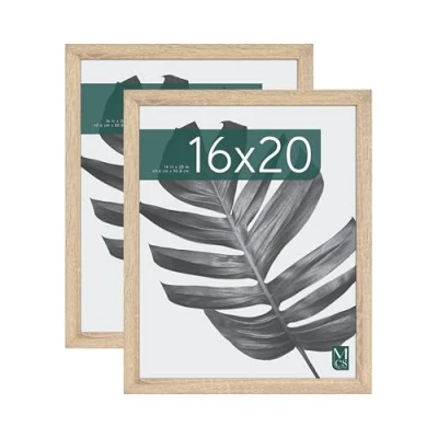 STUDIO GALLERY SELECT COLLECTION: Picture frames feature a natural woodgrain finish designed to help you create the perfect traditional display for your cherished memories and favorite photographs. Display one frame or many to create a gallery wall. EASY TO USE: These hanging picture frames have easy-to-open turn buttons with slide-in backs that make adding your photograph a breeze. Frames include pre-attached sawtooth hangers for horizontal or vertical hanging QUALITY CONSTRUCTION: This photo frame is constructed of durable MDF wood with a sturdy backboard and shatter resistant plexiglass front to protect photos. MCS WALL DECOR: With a passion for design, trend and functionality, MCS delivers best-in-class products that help make your house a home; with multiple sizes and finishes to choose from, you can create a beautiful gallery wall in your living space. DIMENSIONS: This large picture frame features a 1.1-inch wide modern profile and holds a 16x20 x 0.75 poster, picture or artwork.