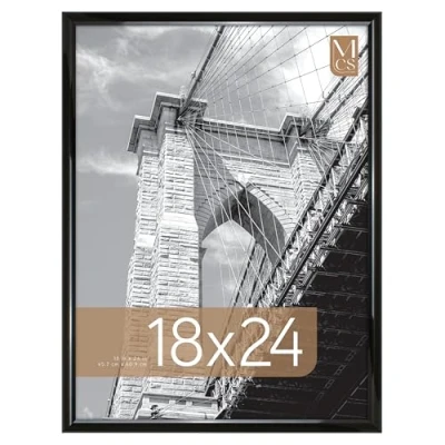 Single DESIGN: The Trendsetter's frame features a 1" wide profile and a high gloss black finish creating a traditional display for your favorite posters, prints or artwork DIMENSIONS: Each wall picture frame measures 19 x 25 inches and holds one 18 x 24 inch poster, puzzle, or picture QUALITY CONSTRUCTION: Each frame is constructed of durable extruded polystyrene material with a shatter resistant lightweight plastic protective front that helps prevent breakage EASY TO USE: Each frame includes a natural corrugate back with pre-attached sawtooth hangers for easy vertical or horizontal hanging; Just add your artwork and hang WALL DECOR: With a passion for design, trend and functionality, MCS delivers best-in-class products that help make your house a home; The MCS Trendsetter Poster Frame is the perfect choice for displaying posters, prints or artwork in your home, office, or dorm room