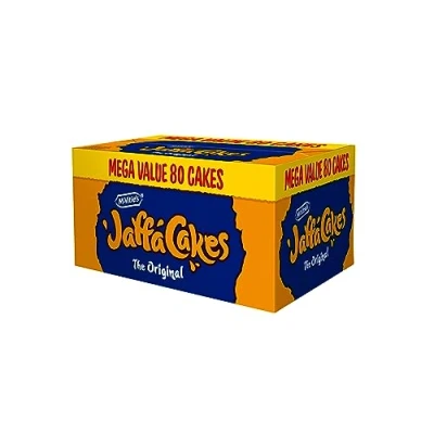 VALUE IRRESISTABLE MULTIPACK: Indulge in a Gourmet confectionery treat with 80 count jaffa cakes, perfect sweet zesty snack for all occasions PRODUCT FEATURES: Vegetarian friendly and packed with delicious citrus flavour, these biscuits are a must-have for any chocolate lover BENEFITS: Satisfy your sweet tooth cravings while enjoying the convenience of individual wrapped cakes. Perfect as on-the-go snacks or tea-time treats OPTIONS: A Mega box containing 4 packs of 20 jaffa cakes - share with friends and family or keep them all to yourself! QUALITY: McVitie's Jaffa Cakes are known for their yummy combination of biscuit, chocolate, and orange jelly - a classic favourite enjoyed by many across generations