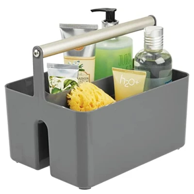 mDesign Under Sink Storage Plastic and Metal Bathroom Caddy Portable Cosmetics Organiser Charcoal Grey/Matte Satin