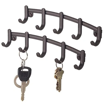 MANY HOOKS FOR MULTIPLE KEYS: The rack comes equipped with five separate, sturdy hooks so you can store all of your keys and accessories neatly in one place. WALL-MOUNTED DESIGN: Using the included hardware, these key and coat hooks can be installed on to almost any wall to create instant storage space wherever you need it. MATERIALS AND COLOUR: Made from a durable, sturdy metal, the key hook rack comes in a vintage, warm bronze finish. Not only will the hooks stand up to daily use, they look great as well. MEASUREMENTS: Sized at 21.3 cm x 2.5 x 4.6 cm, the wall-mounted key hook rack is sleek and compact yet offers ample storage space on five hooks - the ultimate accessory in your hallway. International products have separate terms, are sold from abroad and may differ from local products, including fit, age ratings, and language of product, labeling or instructions., Weight: 0.28 pounds, Manufacturer: MetroDecor