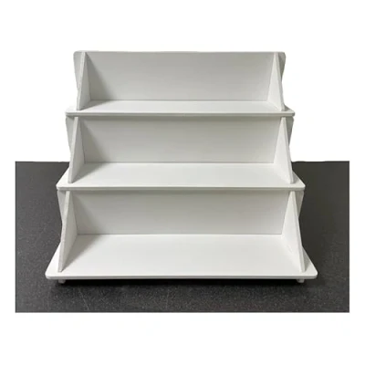 White 3 Tiered Display Shelves made from sturdy 6mm MDF Easy to slot together with instructions included This tiered display stand is a versatile display unit with many applications Manufactured in the UK from 100% recyclable materials Please check out our shop to find other premium products