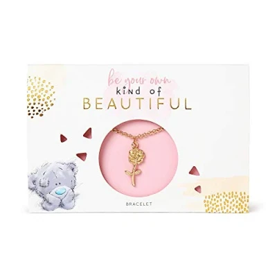 GORGEOUS GOLD-COLOURED BRACELET - crafted in sterling silver with gold effect finish, this lovely bracelet features a pretty rose pendant - ideal as a birthday gift or a treat to yourself! ADJUSTABLE BRACELET - the fastening can be adjusted to fit different wrist sizes, making this a great present for an adult or a child aged three and over INSPIRATIONAL MESSAGING -the bracelet comes on a gift card featuring Tatty Teddy artwork and the uplifting message 'Be Your Own Kind of Beautiful' - a lovely quote to make someone's day HAND FINISHED FOR PREMIUM QUALITY - made with love, care and meticulous attention to detail, this thoughtful present is sure to put a smile on the face of someone special GENUINE ME TO YOU JEWELLERY – unique and instantly recognisable with grey fur, a cute blue nose and patches, Tatty Teddy has captured millions of hearts all over the world with a timeless message of love, happiness and friendship, Manufacturer: Carte Blanche Greetings Ltd
