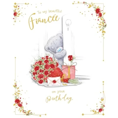 LUXURY BIRTHDAY CARD FOR YOUR FIANCEE - designed especially for your amazing fiancee on her birthday, this cute bespoke card features Tatty Teddy opening the door to a bouquet of red roses, with further hand sketched artwork on the inside pages ROMANTIC POEM INSIDE - the heartfelt words on the inside pages read 'All my love is sent to you on your special day, my heart is always yours to keep my darling fiancee. With all my love on your birthday' HAND FINISHED FOR PREMIUM QUALITY - handmade from highest quality materials, with love and care, and finished with gold foil details to add extra sparkle to a special day! PRESENTED IN A LUXURIOUS GIFT BOX - such a truly special birthday card comes in its own box to ensure it remains in perfect condition for years to come GENUINE ME TO YOU GREETING CARD – unique and instantly recognisable with grey fur, a cute blue nose and patches, Tatty Teddy has captured millions of hearts all over the world with a timeless message of love, happiness and friendship