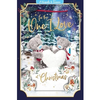 CUTE 3D CHRISTMAS CARD FOR SOMEONE YOU LOVE- this luxury design in the Me to You '3D' range features an adorable lenticular image, bringing Tatty Teddy to life as you gently tilt the card! ORIGINAL ME TO YOU ARTWORK - the cute photo-real image shows two Tatty Teddy bears in a starlit snowy forest building a snow-heart; the image is repeated on the inside and back of the card, with luxe gold detail to add extra sparkle DETACHABLE KEEPSAKE PLAQUE - the 3D image can be removed to create a cute hanging keepsake plaque that's sure to be treasured long after Christmas Day 6x9 INCHES PREMIUM CARD WITH CHRISTMAS MESSAGE - the loving words on the front of the card read 'For the one I love…At Christmas' while the message inside reads 'Christmas spent with you is just perfect. With all my love' GENUINE ME TO YOU GREETING CARD – unique and instantly recognisable with grey fur, a cute blue nose and patches, Tatty Teddy has captured millions of hearts all over the world with a timeless message of love, happiness and friendship