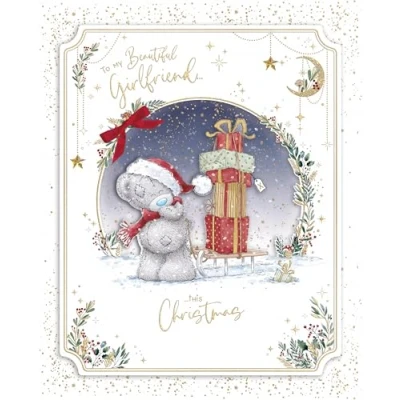 STUNNING CHRISTMAS CARD FOR YOUR GIRLFRIEND - for the ultimate romantic gesture, gift your beautiful girlfriend this unique Christmas card that's guaranteed to melt her heart HANDMADE TOUCHES AND KEEPSAKE BOX - such a special card comes with die cut detail, gem attachments and a beautiful keepsake box to be treasured forever ROMANTIC VERSE - the heartfelt verse inside the card reads 'To my beautiful girlfriend…this Christmas' and the inside message reads 'Wishing you the best festive season ever...filled with lots of love and special times together. Merry Christmas with love' PREMIUM BOXED CARD MEASURES 8x10ins - made from highest quality materials, with love and care, this gorgeous Christmas card is fully illustrated both on the front cover and on the inside pages; it's sure to be cherished by your girlfriend as you celebrate the festive season together GENUINE ME TO YOU GREETING CARD – unique and instantly recognisable with grey fur, a cute blue nose and patches, Tatty Teddy has captured millions of hearts all over the world with a timeless message of love, happiness and friendship