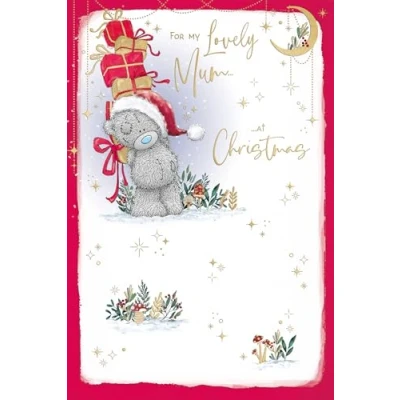 LOVELY CHRISTMAS CARD FOR MUM - with its cute illustration and gold foil detail, this beautiful card is sure to let your mum know how much she's loved at Christmas and all through the year UNIQUE TATTY TEDDY ILLUSTRATION - the bespoke hand sketched artwork shows Tatty Teddy in a snowy scene, with a magical backdrop of twinkly stars and festive foliage LOVING WORDS - The caption on the front of the card reads 'To a lovely Mum at Christmas' and the message inside reads 'Thank you for everything you do. Lots of love' PREMIUM CARD MEASURES 6x9ins - made from highest quality materials, with love and care, this gorgeous Christmas card celebrates all the warmth and joy of the festive season GENUINE ME TO YOU GREETING CARD – unique and instantly recognisable with grey fur, a cute blue nose and patches, Tatty Teddy has captured millions of hearts all over the world with a timeless message of love, happiness and friendship