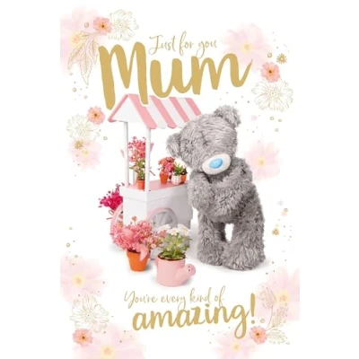 SHOW MUM HOW MUCH YOU CARE - this adorable card is perfect for letting your wonderful mum know how special she is on Mother's Day - and every day of the year! CUTE PHOTO FINISH ARTWORK - your mum is sure to love the endearing photo-real image showing Tatty Teddy at a colourful flower market, with further pretty images on the inside of the card too LOVING WORDS - the front cover text in gold foil reads 'Just for you, Mum…You're every kind of amazing!' while the inside message reads 'Wishing you a wonderful Mother's Day. With lots of love.' CARD MEASURES 6 X 9 INCHES (15 x 22 CMS) - printed on top quality board and finished to the highest standards, this is a special card that's sure to make her day GENUINE ME TO YOU GREETING CARD – unique and instantly recognisable with grey fur, a cute blue nose and patches, Tatty Teddy has captured millions of hearts all over the world with a timeless message of love, happiness and friendship