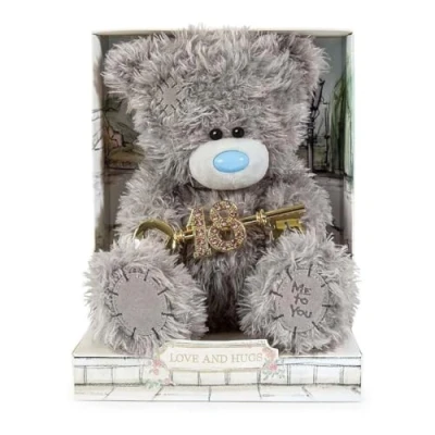 GORGEOUS 18TH BIRTHDAY TATTY TEDDY - super soft and fluffy, this cute Tatty Teddy is the perfect gift for a much-loved friend or family member as they turn 18; ideal for a daughter, granddaughter, sister, niece, goddaughter, best friend or anyone who's special to you! SOFT FABRIC AND 18TH KEY ACCESSORY - Tatty Teddy is holding an ornate gold-coloured metal key with the number 18 attached; each numeral is studded with dazzling pink crystal for maximum sparkle on the big day 19-CM HIGH BEAR ON ILLUSTRATED GIFT PLINTH - this gorgeous cuddly bear is beautifully presented on a premium cardboard plinth; the original artwork depicts a Regency-style park in soft shades of green, blue and cream HAND FINISHED FOR PREMIUM QUALITY - every Tatty Teddy plush bear is made with love, care and meticulous attention to detail to be treasured for a lifetime GENUINE TATTY TEDDY by ME TO YOU – unique and instantly recognisable with grey fur, a cute blue nose and patches, Tatty Teddy has captured millions of hearts all over the world with a timeless message of love, happiness and friendship, Manufacturer: Carte Blanche Greetings