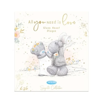 ROMANTIC WEDDING DAY PLAQUE - this lovely heart shaped plaque is designed to sit on a windowsill, shelf or mantelpiece to remind the happy couple of their wonderful wedding day INSPIRATIONAL WORDS AND CUTE ILLUSTRATION - printed in gold foil is the caption 'All you need is love'; there's also an adorable illustration of two Tatty Teddy bride and groom bears PERFECT WEDDING GIFT - a thoughtful gesture for the bride and groom and the ideal reminder of the love and happiness they'll share as they embark on married life together PREMIUM GLASS GIFT - made from quality materials to last for many years to come, the plaque can be displayed in a bedroom, lounge or any living space as a daily reminder of their special wedding day vows GENUINE ME TO YOU GIFT – unique and instantly recognisable with grey fur, a cute blue nose and patches, Tatty Teddy has captured millions of hearts all over the world with a timeless message of love, happiness and friendship