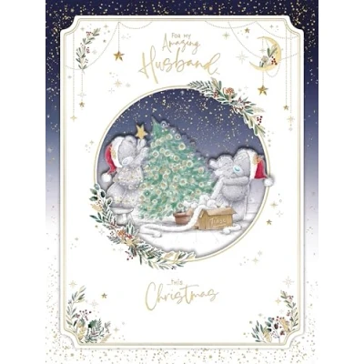STUNNING CHRISTMAS CARD FOR YOUR HUSBAND - let him know just how much you love him with this extra-special card that perfectly captures the warmth and joy of this magical season HANDMADE TOUCHES AND KEEPSAKE BOX - this luxury card comes with die cut detail, delicate gem attachments, gold foil embellishments and a beautiful keepsake box to be treasured forever ROMANTIC VERSE - the words on the front cover read 'For my amazing husband...this Christmas' and the inside message reads 'I will always wish you the best Christmas ever...full of special memories of our amazing time together! Merry Christmas, with all my love' PREMIUM BOXED CARD MEASURES 12x9ins - made from highest quality materials, with love and care, this beautiful Christmas card is sure to be cherished by your husband GENUINE ME TO YOU GREETING CARD – unique and instantly recognisable with grey fur, a cute blue nose and patches, Tatty Teddy has captured millions of hearts all over the world with a timeless message of love, happiness and friendship