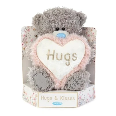 CUTE HUGS BEAR FOR SOMEONE SPECIAL - soft and fluffy, this adorable Tatty Teddy is designed especially for someone who deserves a big hug; it's the perfect gift for a much-loved friend, daughter, granddaughter, niece, or anyone who would appreciate a hug from their favourite blue-nose bear! SOFT FABRIC AND EMBROIDERED DETAIL - Tatty Teddy's grey fur is super soft and fluffy; the padded loveheart is made with sumptuous faux velvet with the word Hugs embroidered in gold in the centre and a pink fur trim with gold fleck for added sparkle 15-CM HIGH BEAR ON LUXURY GIFT PLINTH - this gorgeous cuddly bear is the star of the show on a premium cardboard stage-effect plinth illustrated with meadow flowers and a luxury foiled Hugs caption HAND FINISHED FOR PREMIUM QUALITY - every Tatty Teddy plush bear is made with love, care and meticulous attention to detail to be treasured for a lifetime GENUINE TATTY TEDDY by ME TO YOU – unique and instantly recognisable with grey fur, a cute blue nose and patches, Tatty Teddy has captured millions of hearts all over the world with a timeless message of love, happiness and friendship, Manufacturer: Carte Blanche Greetings