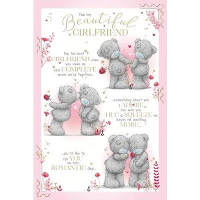 Me to You Tatty Teddy Valentine's Day Card 'To my Beautiful Girlfriend' 6 x 9" Official Collection